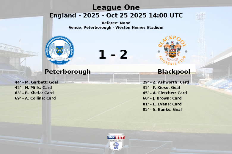 Peterborough vs Blackpool Oct 25 2025 14:00 UTC