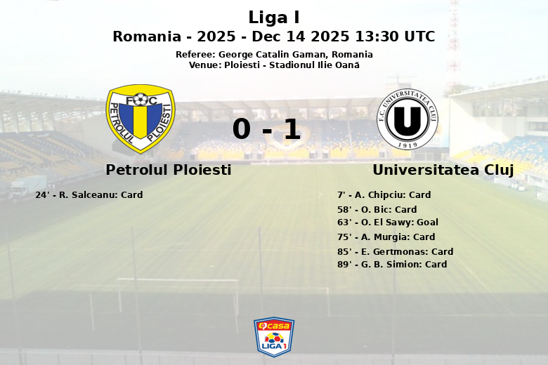 Ploiesti – Em uma partida tensa realizada no Stadionul Ilie Oană, Universitatea Cluj derrotou o Petrolul Ploiesti com o placar de 1 a 0. O jogo, válido pela 20ª rodada da Liga I romena, foi marcado pela intensidade e pelas batalhas no meio-campo.