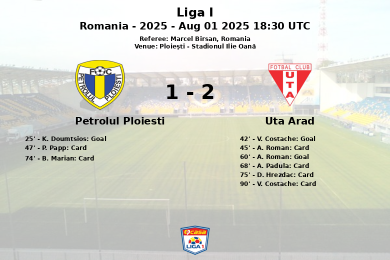 Ploieşti, Romênia – O Stadionul Ilie Oană foi o palco de uma partida disputada da Liga I entre o Petrolul Ploieşti e o UTA Arad. Apesar de dominar a posse de bola com 63%, o Petrolul não conseguiu converter sua superioridade em gols. O UTA Arad, com 37% de posse, mostrou-se mais eficaz em seus ataques.