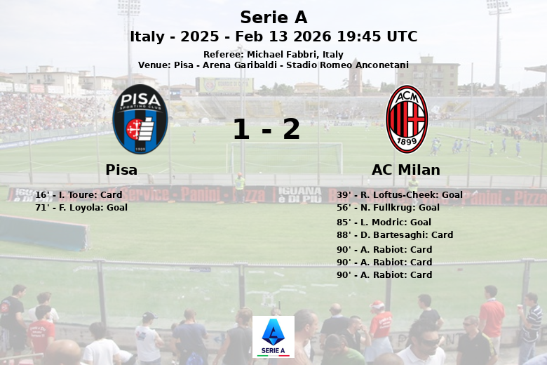 Pisa, Itália – Em um jogo válido pela 25ª rodada da Serie A, o AC Milan triunfou sobre o Pisa na Arena Garibaldi com um placar final de 3 a 1. A partida, supervisionada pelo árbitro Michael Fabbri, foi marcada pela intensidade e luta no meio-campo.