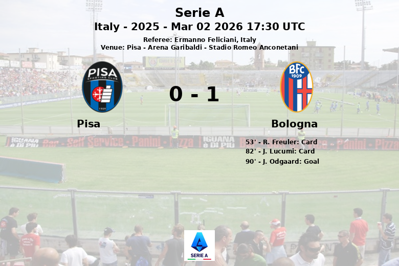 O jogo permaneceu sem gols durante a maior parte do tempo, com ambas as equipes exibindo solidez defensiva. O Bologna teve mais chutes (8 contra 6 do Pisa), mas apenas um foi no alvo, em comparação com os três do time da casa. A partida tornou-se cada vez mais física com o passar do tempo, refletida nas 15 faltas cometidas pelo Pisa e nas 10 do Bologna. Freuler e Lucumi do Bologna receberam cartões amarelos.