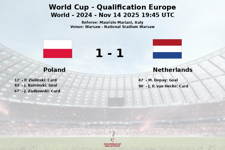 Varsóvia testemunhou um jogo vibrante entre Polônia e Holanda no National Stadium Warsaw, correspondente à qualificação europeia para a Copa do Mundo. O encontro, arbitrado por Maurizio Mariani, terminou com um empate que reflete a intensidade e a paridade mostrada em campo.