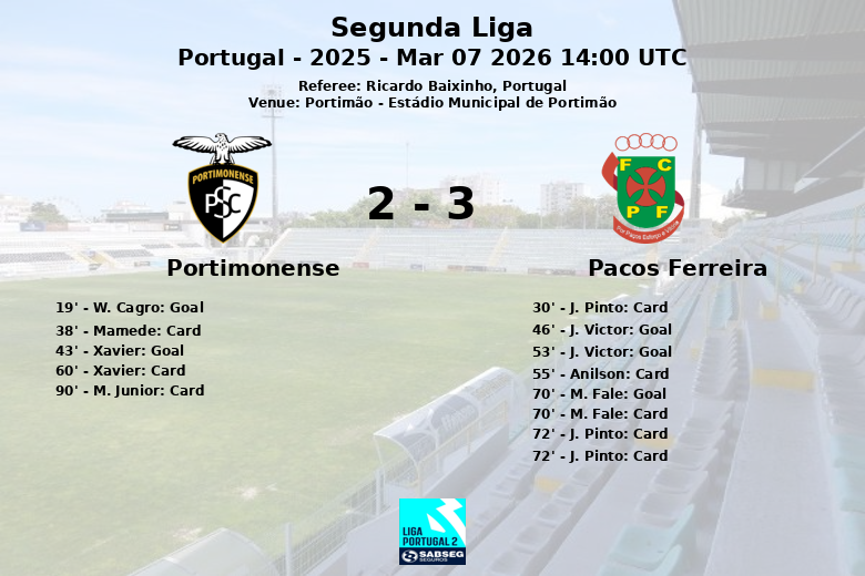 O Estádio Municipal de Portimão foi palco de um jogo vibrante e cheio de alternativas entre o Portimonense e o Paços Ferreira, correspondente à jornada 25 da Segunda Liga portuguesa. O encontro, arbitrado por Ricardo Baixinho, terminou com uma vitória para o Paços Ferreira.