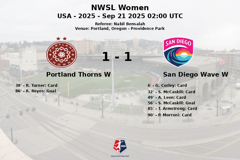 Portland, Oregon – Em um jogo disputado no Providence Park, o San Diego Wave W e o Portland Thorns W empataram em 1 a 1 em uma partida da NWSL Women marcada pela intensidade e cartões. O San Diego Wave dominou a posse de bola com 58% contra 42% do Portland Thorns.