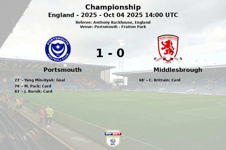 *Portsmouth, Inglaterra* – Em um jogo disputado no Fratton Park, o Portsmouth garantiu uma importante vitória contra o Middlesbrough por uma margem mínima. O único gol da partida aconteceu logo no início, aos 23 minutos, cortesia de Yang Min-Hyuk, que aproveitou uma assistência de J. Williams para mandar a bola para o fundo das redes.