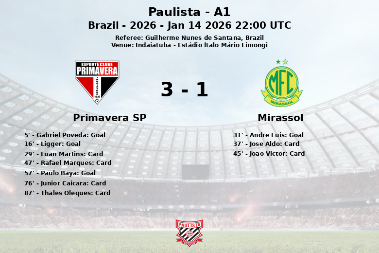 Primavera SP vs Mirassol Jan 14 2026 22:00 UTC