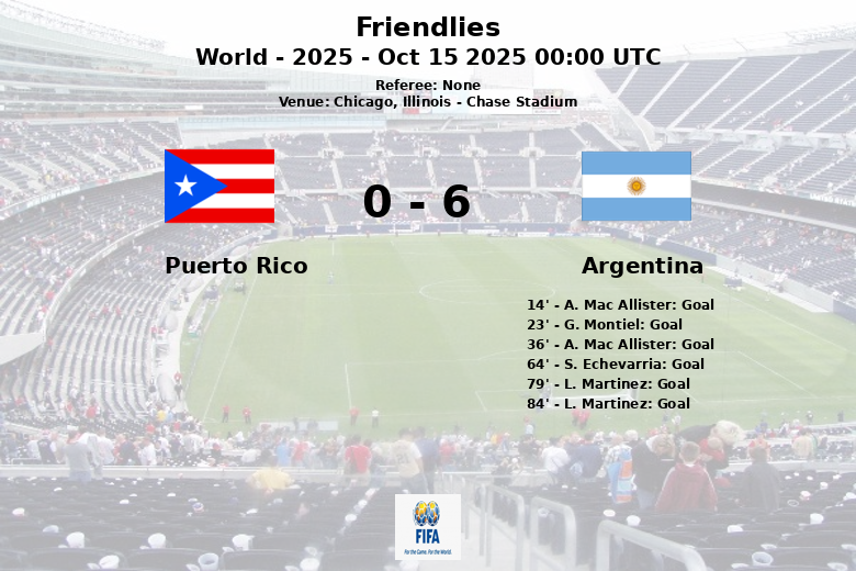 Em um amistoso disputado no Chase Stadium em Chicago, Illinois, a Argentina demonstrou sua superioridade frente a Porto Rico, garantindo uma vitória expressiva. Desde o início, a equipe argentina impôs seu ritmo, controlando a bola com 68% de posse de bola.