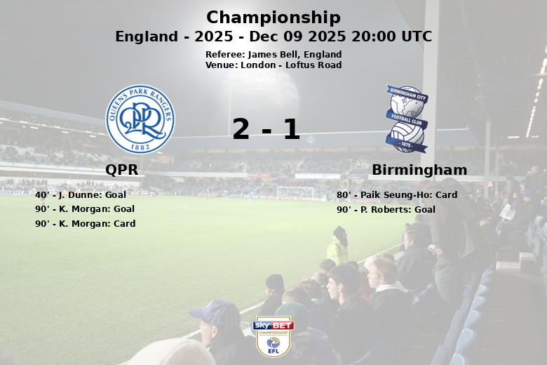 O QPR assumiu a liderança aos 40 minutos, graças a um gol de J. Dunne, assistido por K. Saito, que incendiou a torcida local. No entanto, o Birmingham City, com maior posse de bola (62%), não desistiu. Apesar das dificuldades em criar oportunidades claras de gol, a equipe visitante manteve a pressão.