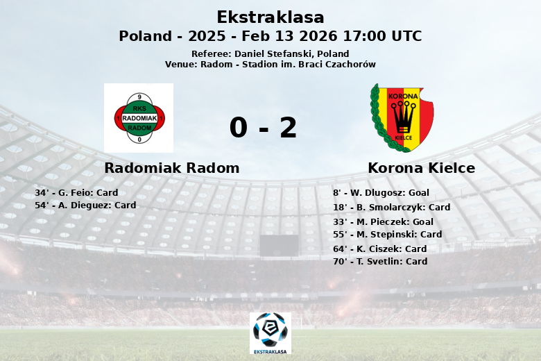 Radomiak Radom vs Korona Kielce Feb 13 2026 17:00 UTC