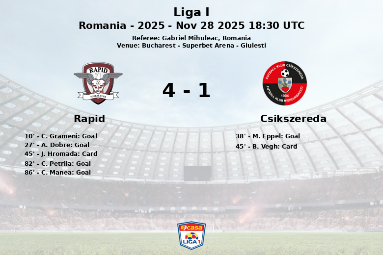 Rapid vs Csikszereda Nov 28 2025 18:30 UTC