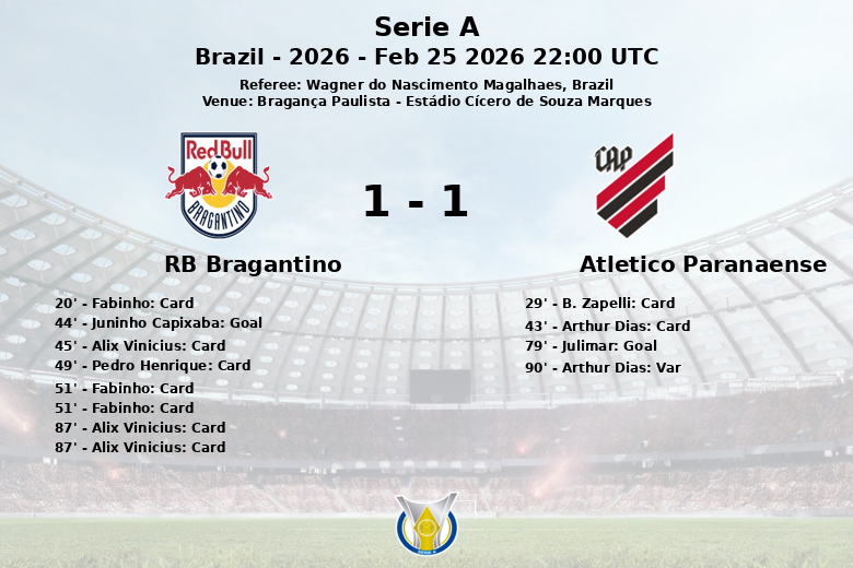 Bragança Paulista, 25 de fevereiro de 2026 – Um jogo carregado de emoções e controvérsias terminou em empate de 1-1 entre RB Bragantino e Atlético Paranaense no Estádio Cícero de Souza Marques. O encontro, válido pela quarta rodada da Série A brasileira, foi marcado por duas expulsões do lado local e um gol anulado do Atlético Paranaense por impedimento no último minuto.