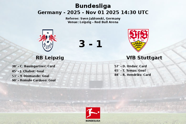 Leipzig, Alemanha – Em um jogo disputado na Red Bull Arena, o RB Leipzig conquistou uma vitória convincente sobre o VfB Stuttgart na nona rodada da Bundesliga. A partida, arbitrada por Sven Jablonski, foi caracterizada por um jogo intenso e oportunidades em ambas as balizas.