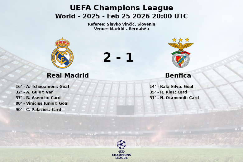 Madrid – Em um confronto eletrizante da UEFA Champions League, o Real Madrid venceu o Benfica no Bernabéu. A partida, disputada em 25 de fevereiro de 2026, foi marcada pela intensidade e oportunidades de gol para ambas as equipes.
