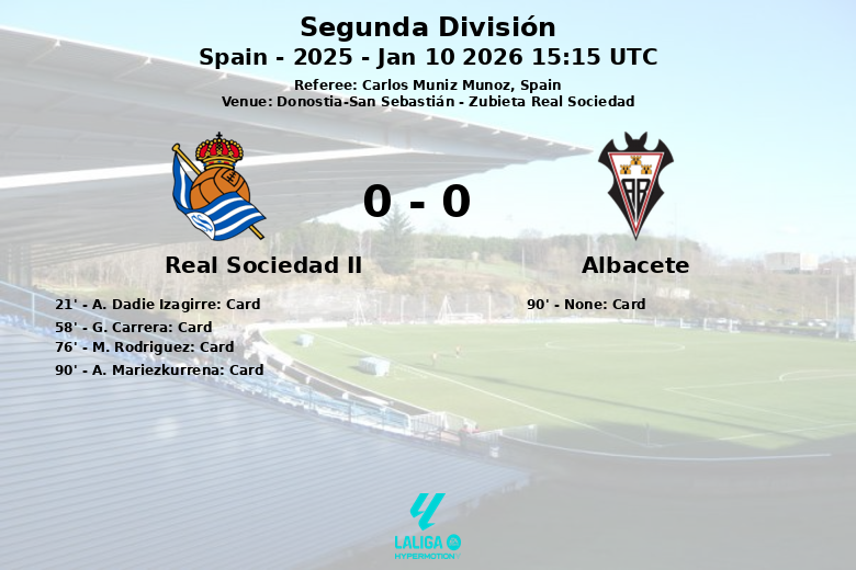 Donostia-San Sebastián foi o palco de um encontro da Segunda División espanhola entre a Real Sociedad II e o Albacete, uma partida que terminou sem gols e que foi marcada pela intensidade e o jogo físico. Apesar da posse de bola favorável ao Albacete, com 55% contra 45% da Real Sociedad II, nenhuma das equipes conseguiu quebrar o empate no placar.