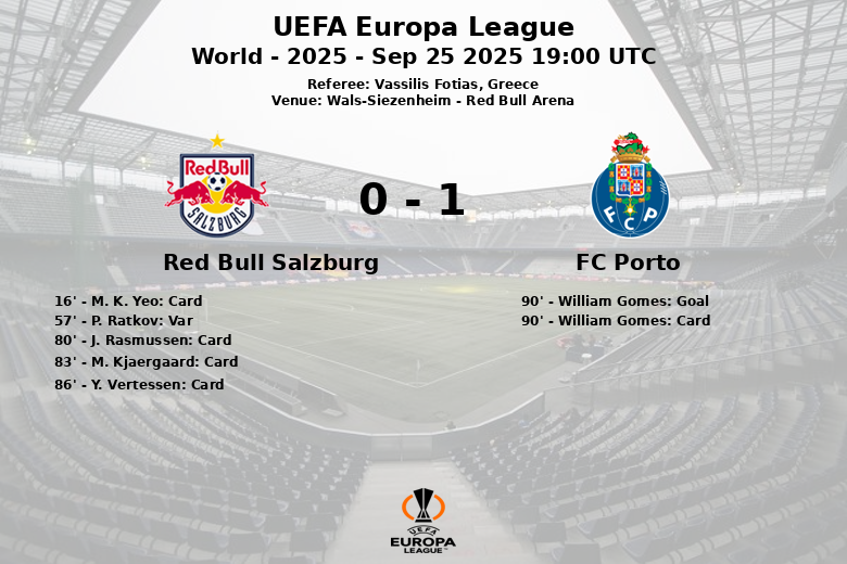Wals-Siezenheim, Áustria – Em um encontro disputado na Red Bull Arena, o FC Porto garantiu uma vitória apertada sobre o Red Bull Salzburg na fase de grupos da UEFA Europa League. O jogo, arbitrado pelo grego Vassilis Fotias, foi caracterizado pela intensidade e batalhas no meio-campo.