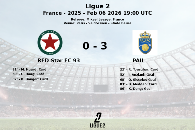 O Pau garantiu a vitória na sua visita ao Stade Bauer, derrotando o Red Star FC 93 por 3 a 0. Apesar do Red Star FC 93 ter dominado a posse de bola com 61%, o Pau foi mais eficaz no ataque, capitalizando nas suas oportunidades de gol.