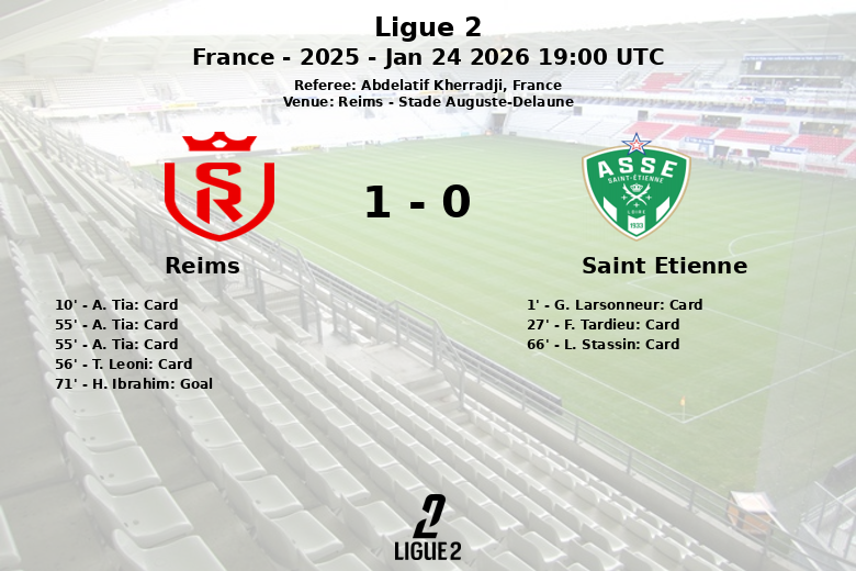 Apesar da desvantagem numérica, o Reims conseguiu abrir o placar aos 71 minutos graças a um gol de H. Ibrahim. Saint-Étienne tentou reagir, mas não conseguiu converter suas oportunidades, apesar de gerar mais chances de gol. A partida terminou com uma vitória magra para o Reims. O acúmulo de faltas, 15 para Saint-Étienne e 9 para Reims, refletiu a intensidade do confronto.