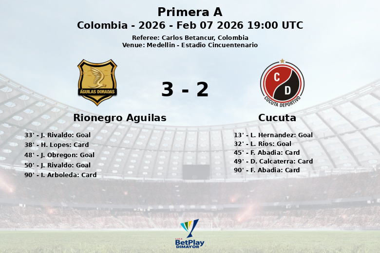 Em um confronto disputado no Estádio Cincuentenario, em Medellín, o Rionegro Águilas superou o Cúcuta Deportivo com uma demonstração convincente de eficiência no segundo tempo. A partida, válida pela quinta rodada da Primera A colombiana, terminou com um placar que reflete a intensidade e os altos e baixos vividos em campo.