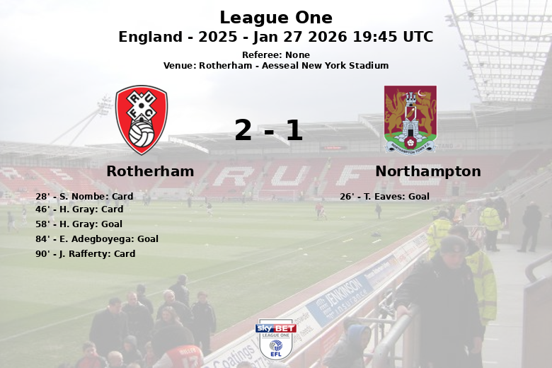 Rotherham vs Northampton Jan 27 2026 19:45 UTC