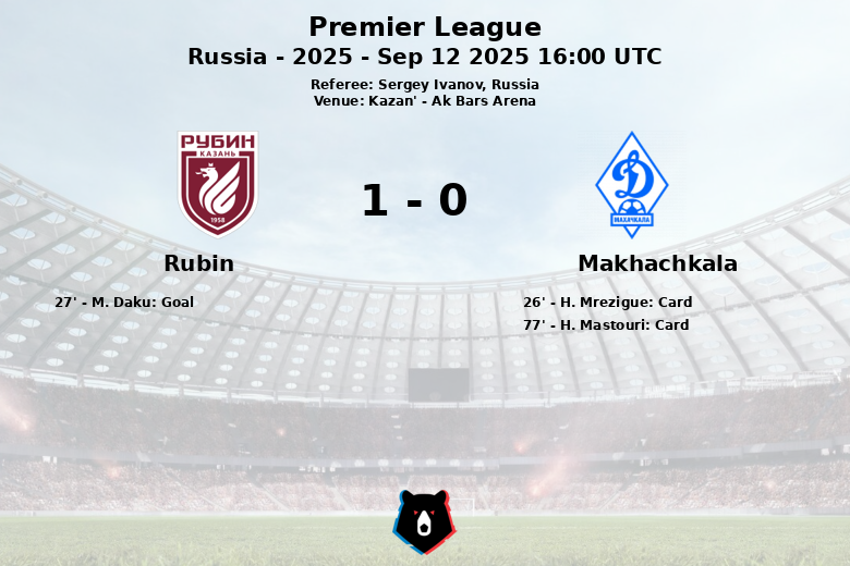 Kazan’, Rússia – Em um jogo correspondente à oitava rodada da Premier League Russa, o Rubin Kazan’ conseguiu superar o Makhachkala na Ak Bars Arena. A partida, arbitrada por Sergey Ivanov, foi tensa e marcada pela alta intensidade no meio-campo.
