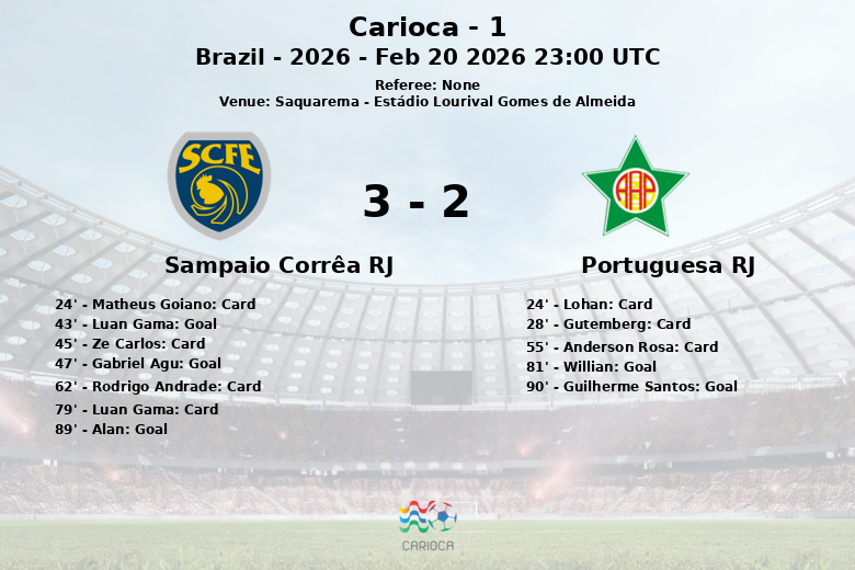 Sampaio Corrêa RJ vs Portuguesa RJ Feb 20 2026 23:00 UTC