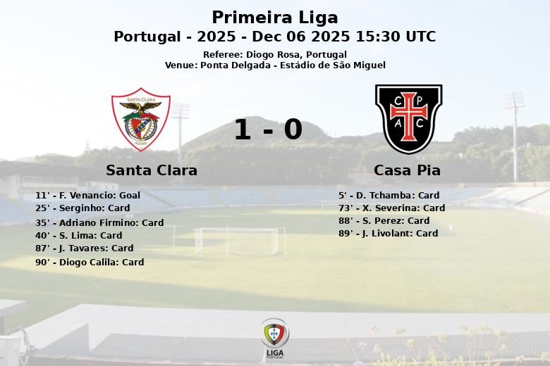Ponta Delgada foi palco de um encontro disputado entre Santa Clara e Casa Pia, onde a equipa da casa saiu vitoriosa. O único golo da partida surgiu cedo, aos 11 minutos, cortesia de F. Venancio, com assistência de Serginho, dando ao Santa Clara uma vantagem que manteria até ao final.