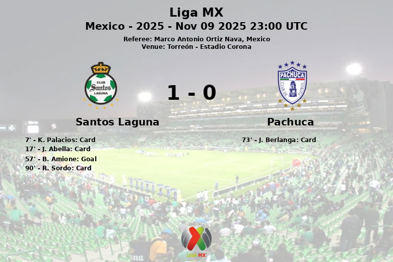 O único gol da partida saiu aos 57 minutos, marcado por B. Amione, com assistência de J. Abella, libertando a euforia entre os torcedores da casa. Santos Laguna mostrou eficácia na frente do gol, convertendo uma das oito ocasiões que teve no alvo. No total, Santos Laguna fez 18 remates, enquanto Pachuca tentou 16, embora apenas 6 deles tenham sido no alvo. Apesar dos 8 escanteios de Pachuca contra os 6 do Santos Laguna, a equipe da casa conseguiu manter sua liderança e garantir os três pontos.