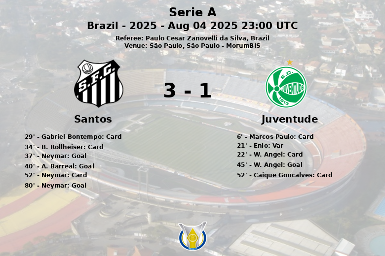 São Paulo, 4 de agosto de 2025 – O Santos FC garantiu uma vitória em um jogo emocionante contra o Juventude, realizado no estádio MorumBIS, com uma atuação destacada de Neymar. A partida, correspondente à 18ª rodada do Brasileirão Série A, foi encerrada com um placar de 3-1.