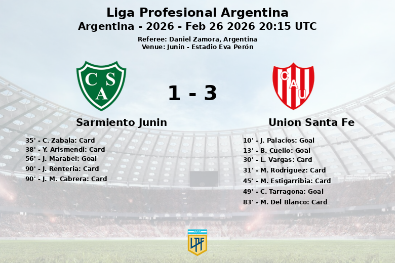 Apesar da maior posse de bola do Sarmiento (62% contra 38% do Unión), a equipe de Santa Fé foi mais eficaz em frente ao gol, com 16 chutes no total (8 no alvo) em comparação com os 12 chutes do Sarmiento (5 no alvo). A partida terminou com um total de seis cartões amarelos para o Sarmiento e três para o Unión, refletindo a intensidade e a disputa que foi vivenciada no campo. A vitória consolida o Unión de Santa Fé na tabela de classificação da Liga Profesional Argentina.