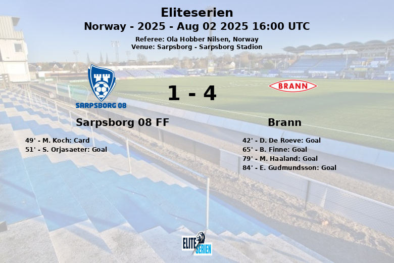 A alegria do empate durou pouco, já que B. Finne colocou o Brann à frente novamente aos 65 minutos, graças a um passe de M. Haaland. M. Haaland ampliou a vantagem aos 79 minutos, assistido por J. Soltvedt. E. Gudmundsson selou a vitória com um gol aos 84 minutos.