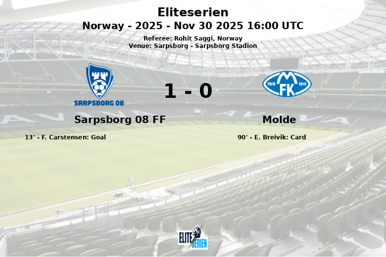 Sarpsborg, Noruega – Em um confronto disputado no Sarpsborg Stadion, o Sarpsborg 08 FF conquistou uma importante vitória sobre o Molde, apesar do domínio esmagador deste último na posse de bola. O único gol da partida surgiu logo aos 13 minutos, graças a uma finalização precisa de F. Carstensen, assistido por S. Sorli, que despertou a alegria nas arquibancadas locais.
