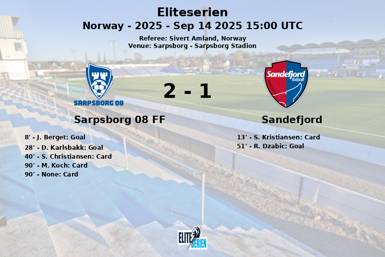 Sarpsborg, Noruega – Em uma partida emocionante realizada no Sarpsborg Stadion, Sarpsborg 08 FF e Sandefjord empataram em um jogo que manteve os torcedores à beira de seus assentos. O Sarpsborg 08 FF abriu o placar cedo com um gol de J. Berget aos 8 minutos, assistido por E. Wichne. Ampliaram a vantagem aos 28 minutos graças a um pênalti convertido por D. Karlsbakk. No entanto, o Sandefjord mostrou seu espírito de luta e diminuiu a diferença aos 51 minutos com um gol de R. Dzabic, assistido por F. Pedersen.