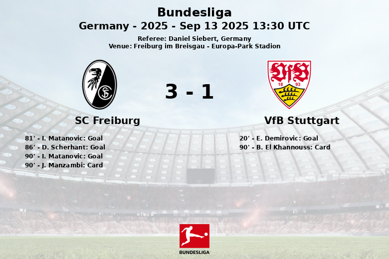 Freiburg im Breisgau, 13 de setembro de 2025 – Em um jogo eletrizante correspondente à terceira rodada da Bundesliga, o SC Freiburg conseguiu uma virada espetacular em casa contra o VfB Stuttgart, culminando em um placar de 4-1. A partida, disputada no Europa-Park Stadion, foi apitada pelo árbitro Daniel Siebert.