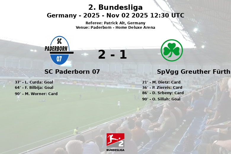 O primeiro gol do encontro aconteceu aos 37 minutos, obra de L. Curda para o Paderborn, após uma jogada sem assistência direta. No segundo tempo, F. Bilbija ampliou a vantagem para o Paderborn aos 64 minutos, assistido por S. Klaas. O Fürth reagiu nos últimos instantes da partida com um gol de O. Sillah aos 90 minutos, com assistência de F. Higl, mas não foi suficiente para mudar o resultado.
