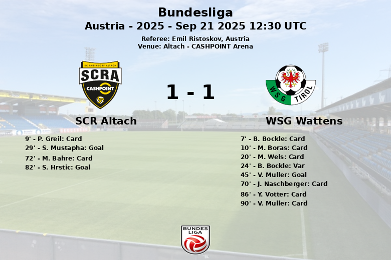 A partida começou em um ritmo frenético, refletido nas advertências precoces. Aos 24 minutos, um gol do WSG Wattens foi anulado após revisão do VAR devido a uma falta anterior. O SCR Altach teve a oportunidade de abrir o placar aos 29 minutos com um pênalti, mas S. Mustapha errou o chute. No entanto, o próprio Mustapha conseguiu marcar instantaneamente aproveitando o rebote.