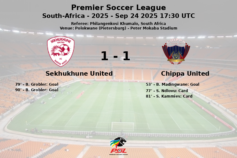 Polokwane (Pietersburg) foi o palco de um encontro cativante entre Sekhukhune United e Chippa United no Peter Mokaba Stadium, correspondente à 8ª jornada da Premier Soccer League. A partida, arbitrada por Philangenkosi Khumalo, terminou com um empate que reflete a intensidade e as oportunidades criadas por ambas as equipes.
