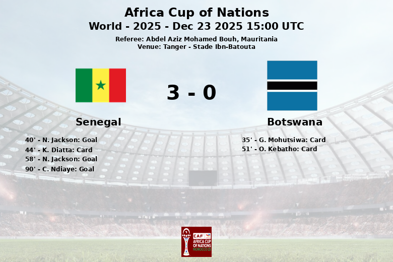 Com uma clara superioridade na posse de bola (68% contra 32% de Botswana) e um domínio nos chutes a gol (17 contra 0), o Senegal reafirma sua candidatura na Copa Africana de Nações.