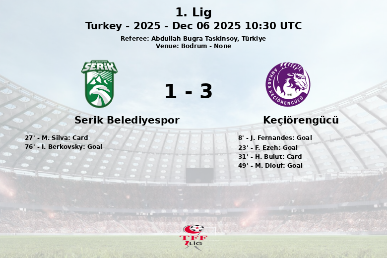 O Keçiörengücü, com uma atuação eficiente e Fernandes em grande forma, levou os três pontos em um encontro que deixou o Serik Belediyespor com a necessidade de melhorar sua pontaria e contundência na área adversária.