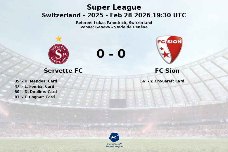 Genebra foi o palco de um encontro disputado entre o Servette FC e o FC Sion, correspondente à 27ª jornada da Super League suíça. O jogo, realizado no Stade de Genève, terminou em um empate que refletiu a intensidade e a luta em campo.