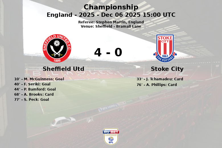 Sheffield, Inglaterra – Sheffield United garantiu uma vitória dominante contra o Stoke City em uma partida disputada em Bramall Lane, como parte da 19ª jornada do Championship. Apesar do Stoke City controlar a maioria da posse de bola com 62% em comparação com os 38% do Sheffield United, a equipe da casa foi muito mais eficiente em frente ao gol.