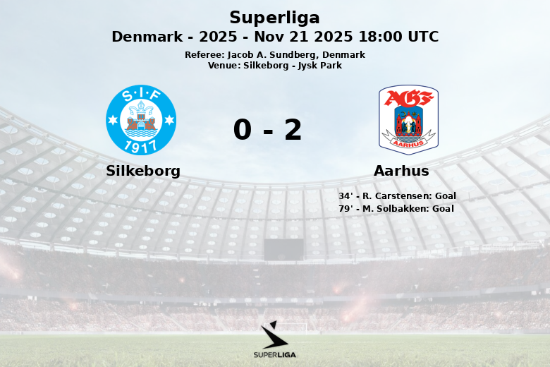 Silkeborg, Dinamarca – Em um jogo disputado no Jysk Park, o Aarhus garantiu a vitória contra o Silkeborg com uma atuação ofensiva notável. Apesar do Silkeborg dominar a posse de bola com 59%, o Aarhus soube aproveitar suas oportunidades de gol. R. Carstensen abriu o placar para o Aarhus aos 34 minutos. No segundo tempo, aos 79 minutos, M. Solbakken ampliou a vantagem do Aarhus, selando o destino da partida.