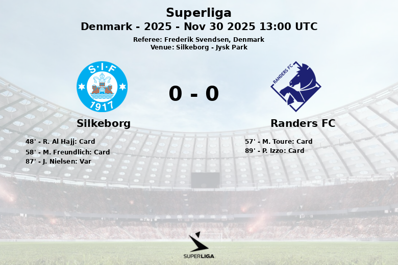 O árbitro Frederik Svendsen teve uma tarde agitada, mostrando quatro cartões amarelos, dois para cada equipe. O jogo também foi marcado por controvérsia, com um gol anulado para o Silkeborg aos 87 minutos após revisão do VAR por uma falta. Apesar do domínio territorial e das oportunidades criadas, o Silkeborg não conseguiu converter sua superioridade em golos. O Randers FC, embora menos incisivo no ataque, conseguiu manter a sua baliza inviolada e levar um ponto valioso de Silkeborg. A partida, correspondente à 17ª jornada da Superliga dinamarquesa, deixou um sabor agridoce para ambas as equipes.