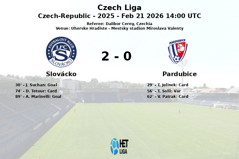 Uherske Hradiste, República Tcheca – Em um jogo disputado no Mestsky stadion Miroslava Valenty, o Slovácko venceu o Pardubice em uma partida correspondente à 23ª rodada da Liga Tcheca. Apesar do Pardubice ter dominado a posse de bola com 59%, o Slovácko mostrou-se mais eficaz na frente do gol.