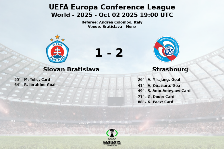 Slovan Bratislava vs Strasbourg Oct 02 2025 19:00 UTC