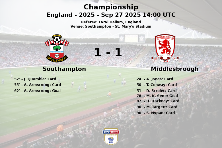 Southampton vs Middlesbrough Sep 27 2025 14:00 UTC