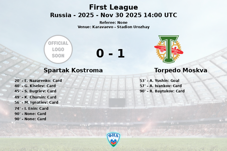 Karavaevo testemunhou um encontro disputado e tenso entre o Spartak Kostroma e o Torpedo Moskva na jornada 21 da First League russa. A partida, realizada no Stadion Urozhay, foi marcada por uma série de advertências e uma expulsão no final do jogo, refletindo a intensidade com que ambas as equipes abordaram o confronto.