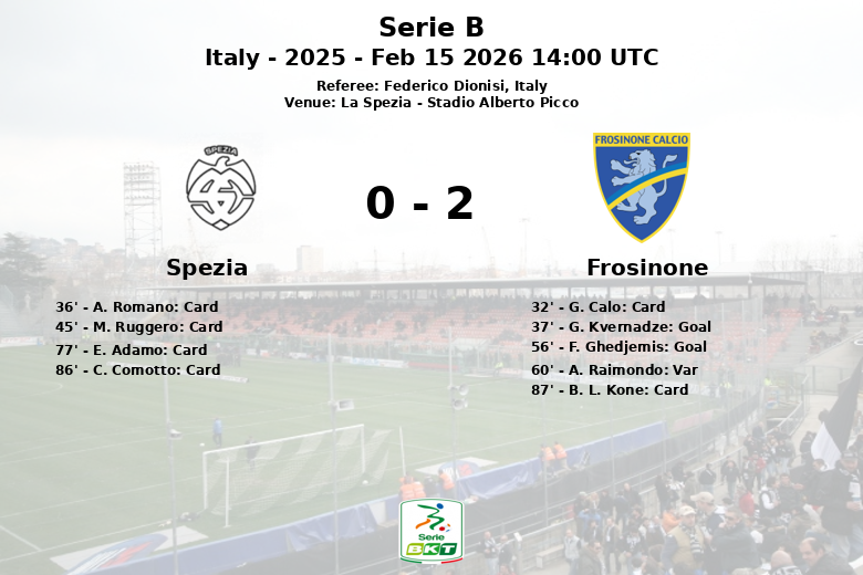 La Spezia, Itália – Em um jogo disputado no Stadio Alberto Picco, o Frosinone garantiu uma vitória merecida contra o Spezia. A partida, válida pela 25ª rodada da Série B, foi marcada pelo domínio do Frosinone no ataque, refletido em seus 15 chutes totais contra 5 do Spezia.