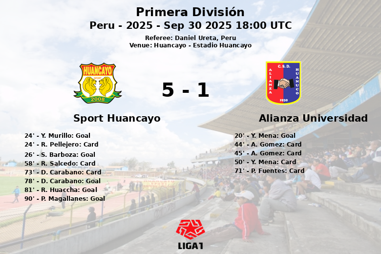 Huancayo, Peru – Em uma partida realizada no Estádio Huancayo, o Sport Huancayo garantiu uma vitória convincente contra o Alianza Universidad, em um jogo marcado por intensidade e cartões. Embora o Alianza Universidad tenha assumido a liderança com um pênalti convertido por Y. Mena aos 20 minutos, o Sport Huancayo respondeu rapidamente com gols de Y. Murillo (24’) e S. Barboza (26’) para assumir a liderança.
