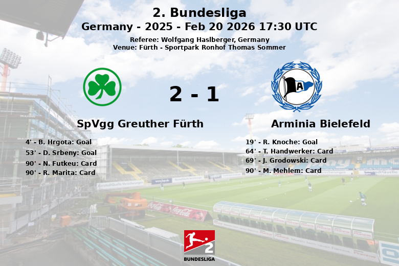 SpVgg Greuther Fürth vs Arminia Bielefeld Feb 20 2026 17:30 UTC