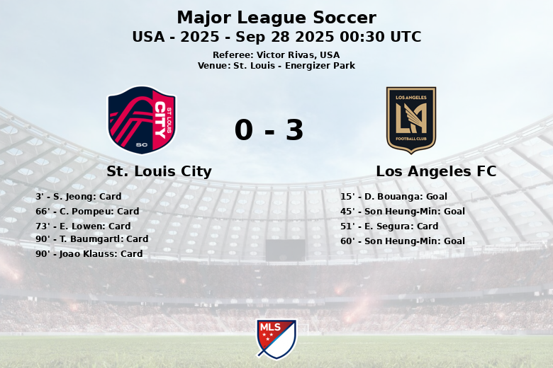 St. Louis, EUA – Los Angeles FC garantiu uma vitória convincente em sua visita ao Energizer Park, superando o St. Louis City em um jogo marcado pela intensidade e advertências. A partida, correspondente à 32ª rodada da temporada regular da Major League Soccer, viu a equipe de Los Angeles impor seu domínio desde o início.
